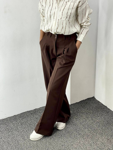 شلوار زنانه پایین چین لینن