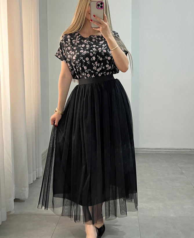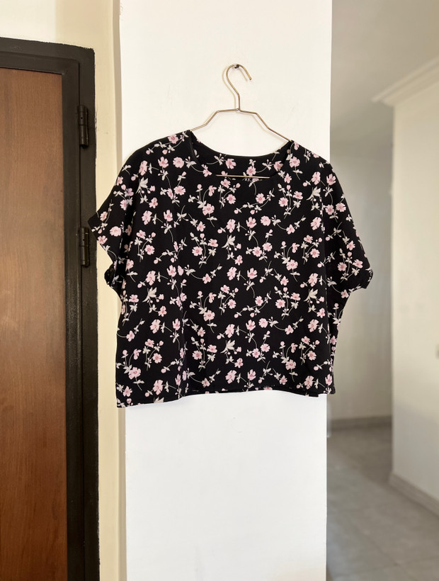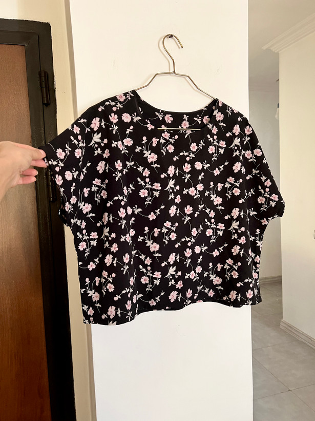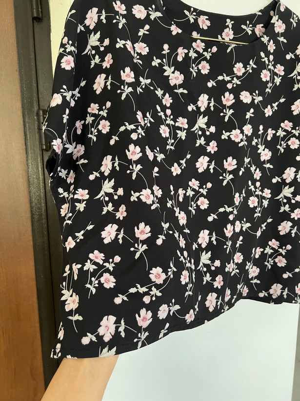 بلوز استین افتاده طرح شکوفه جنس کرپ