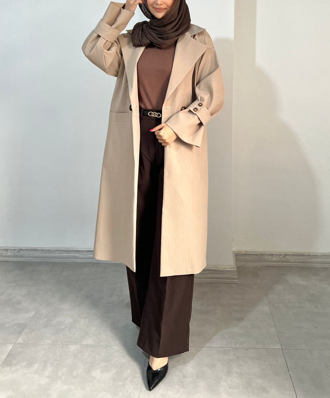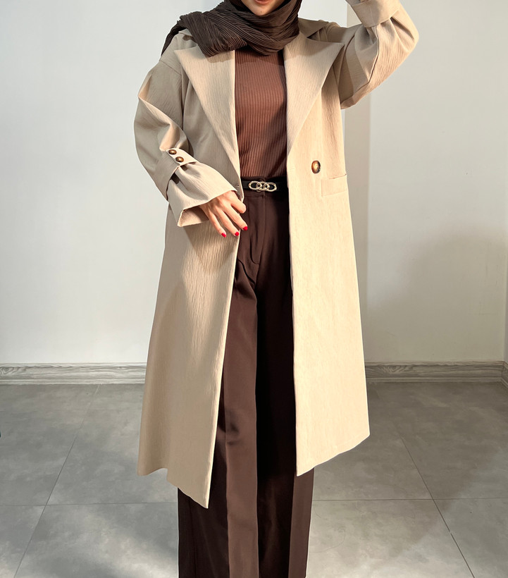 کت زیبا کاملا استر کشی شده جنس کتان کرکره ای بسیار با کیفیت قد ۱۲۰
