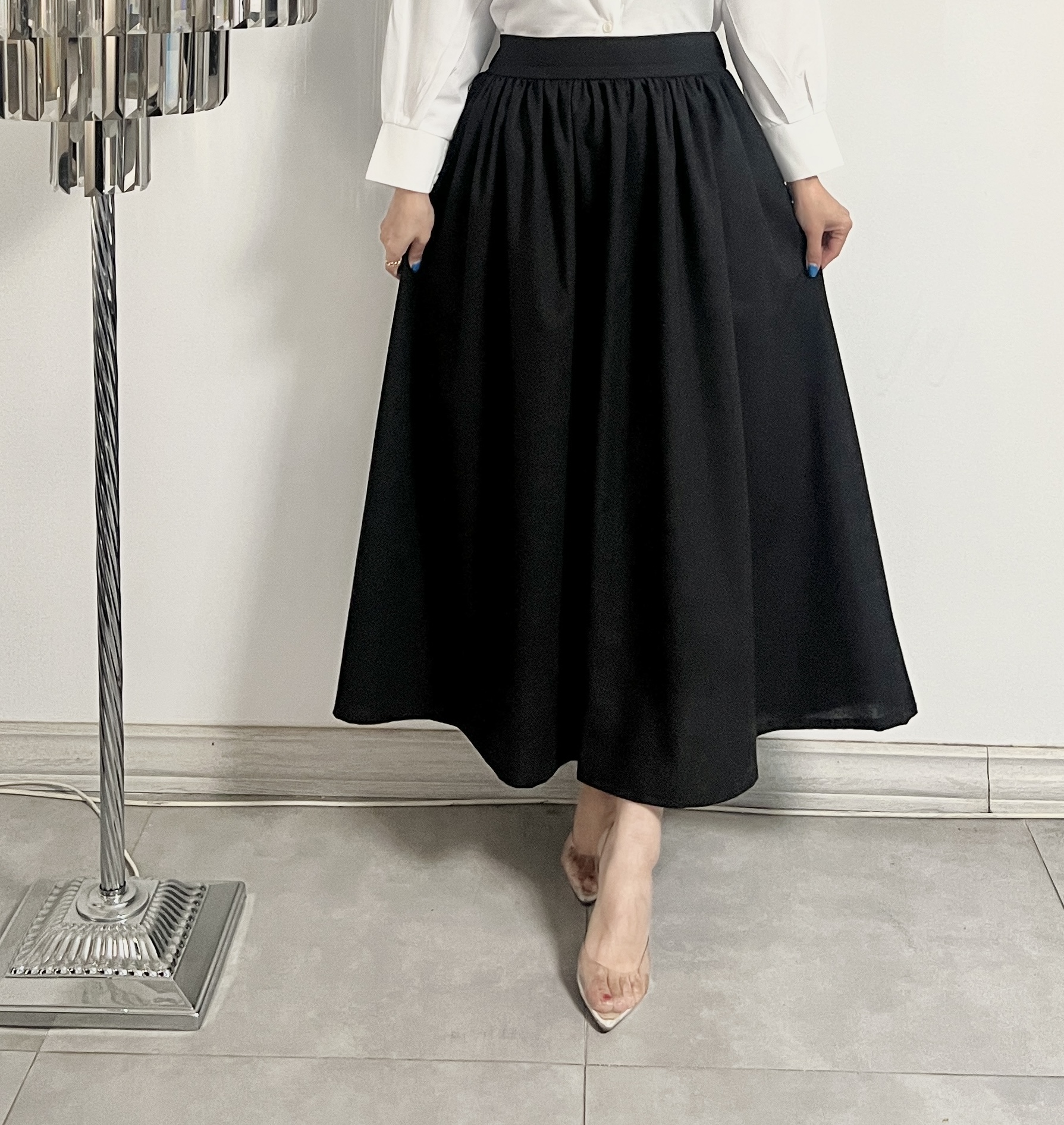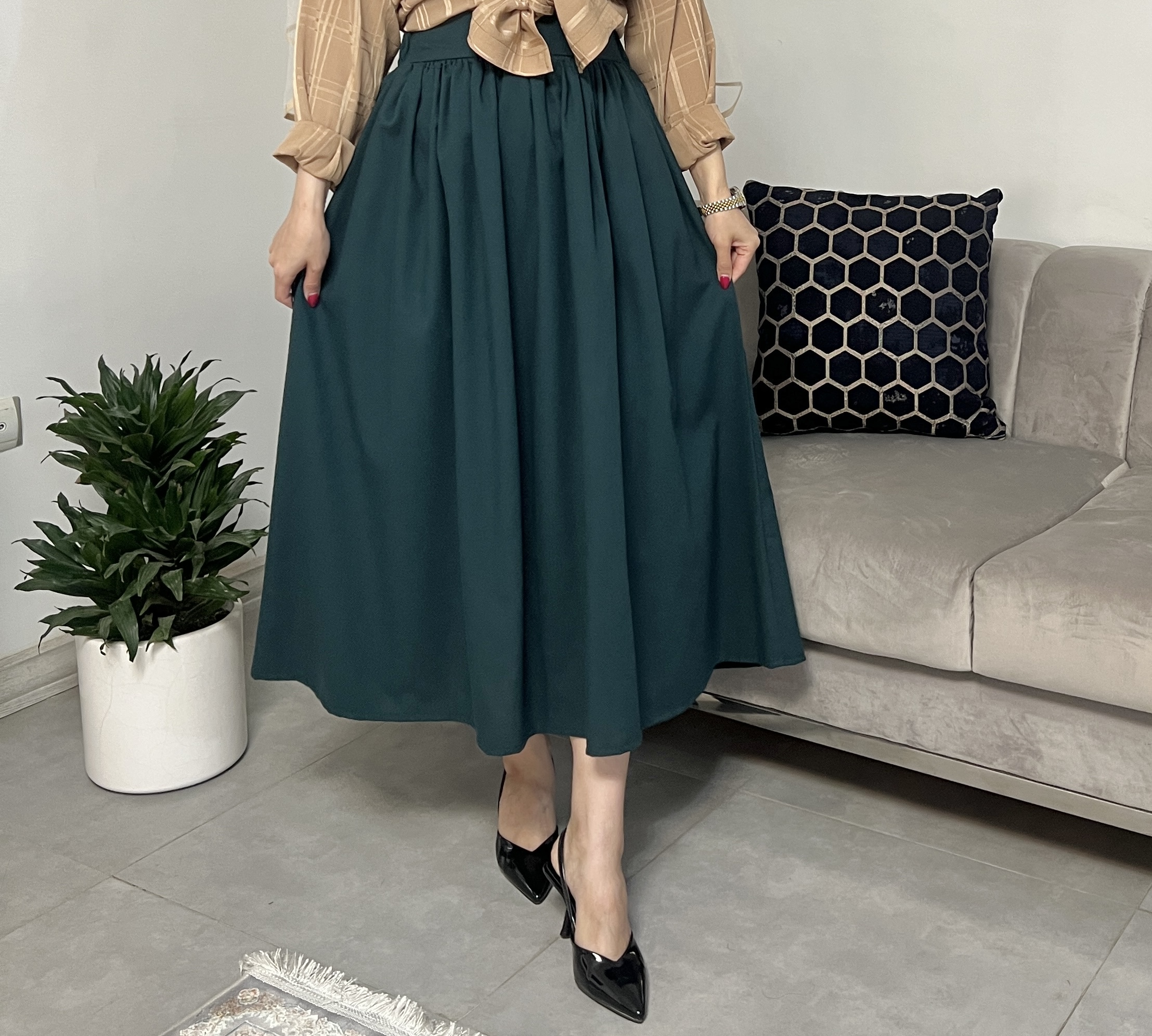جنس لینن و کرپ قد ۹۰ و قابل تغیر: دامن بلند
